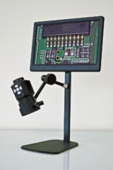 An effective rework microscope should have a long working distance so that your hands can move freely and work under the microscope. That means it should have 3”-4” minimum working distance for comfortable hand maneuverability. Typically, a 10x-40x zoom is a plenty for reworking. The choices are between viewing through two eyepieces and on the LCD through the camera image. The modern HD camera sensor yields an ultra-high-resolution image, so it is as sharp as what our eyes see nowadays.