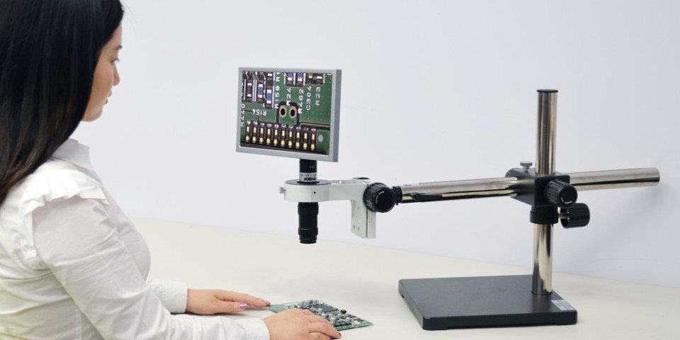- Multi-position and multi tilting angle boom stand for large PCB and parts over 10″