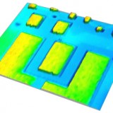 3D viewing of scanned solder paste is created for better visualization of screen printing in a three dimensional viewing model. Click and drag to view from any angles, any orientation. Color contrast highlights 3D morphology of solder paste printing.